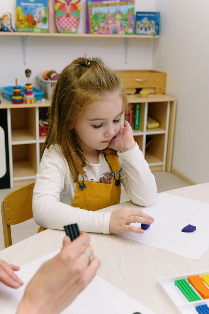 A girl engaging in educational learning by writing numbers on a chalkboard in a classroom.